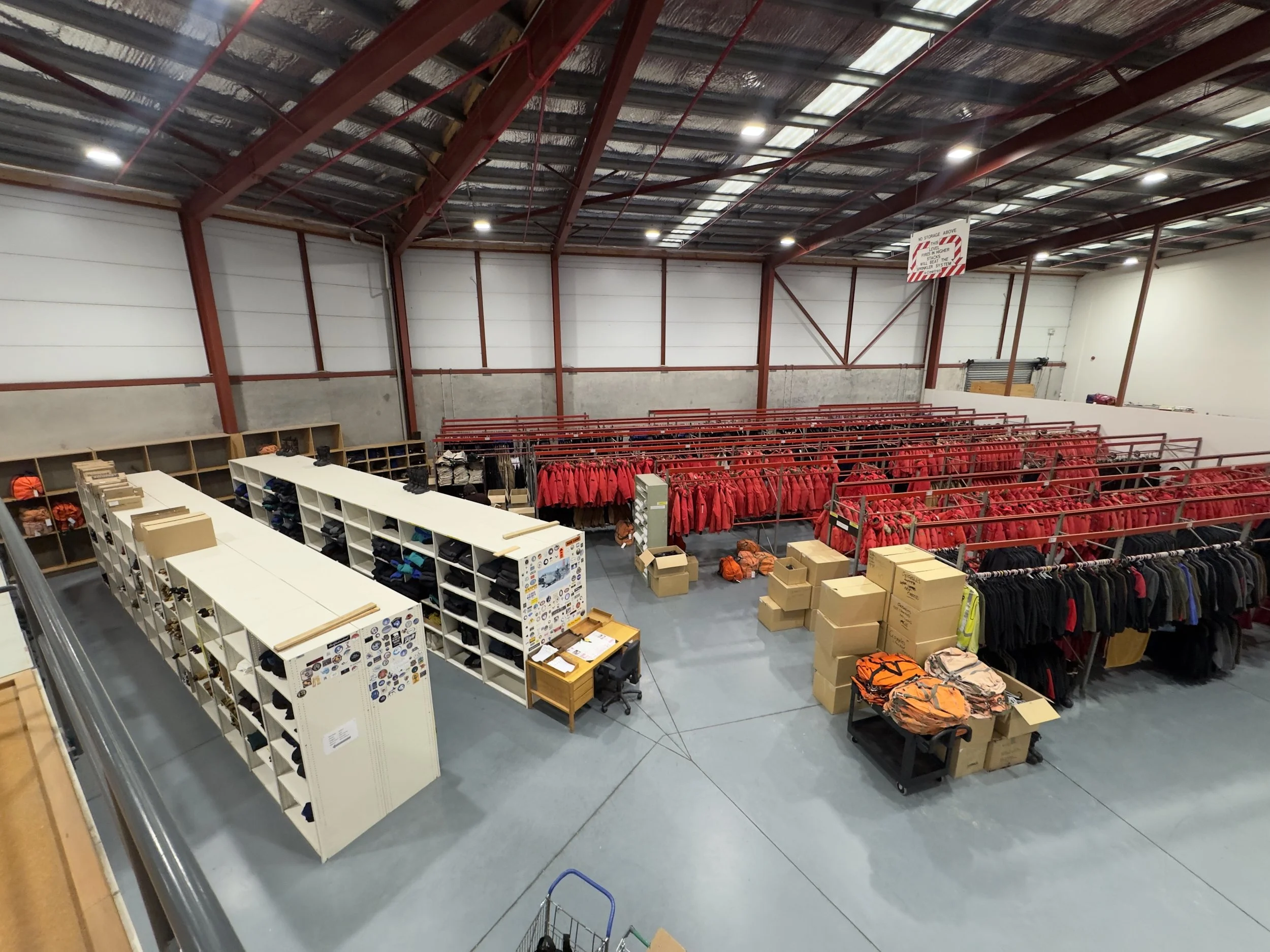 Inside the Clothing Distribution Center.